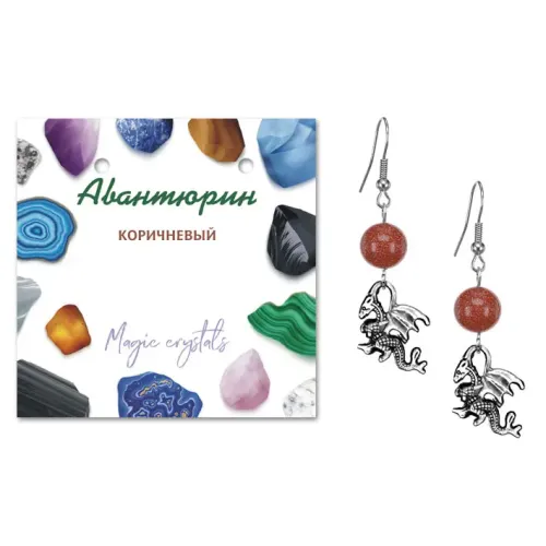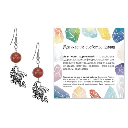 Серьги Дракон (удача, могущество, успех), Коричневый авантюрин SEB07-01-25