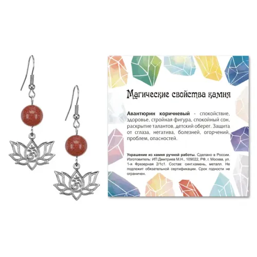 Серьги Лотос и Ом (гармония и развитие), Коричневый авантюрин SEB07-01-30