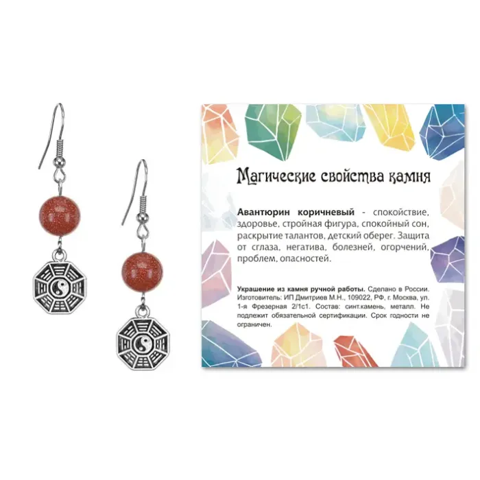 - Упаковка включает прозрачный пакет с подвесом и вкладыш с описанием значения камня, что делает эти серьги отличным подарком или сувениром.