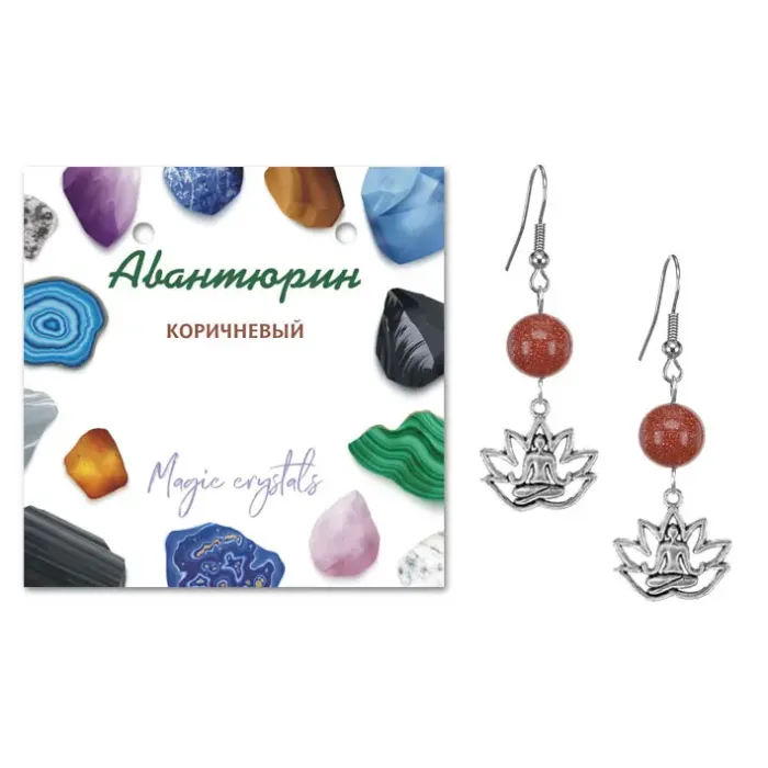 Серьги Лотос (гармония и развитие), Коричневый авантюрин SEB07-01-2064