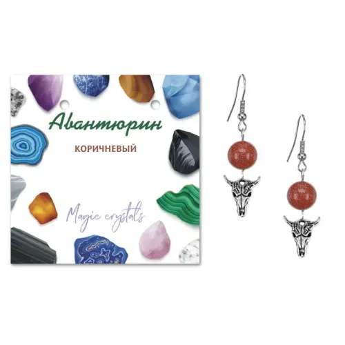 Серьги Череп быка (сила, мужество, защита), Коричневый авантюрин SEB07-01-2076