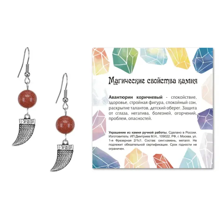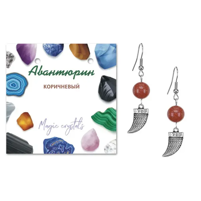 Серьги-амулеты из коллекции MAGIC CRISTALS 2 — это не просто украшение, а источник силы и энергии. Изготовленные с использованием синтетического камня коричневого авантюрина, они символизируют мужество и волю. Диаметр бусин составляет 10 мм, что делает серьги заметными и стильными. Фурнитура выполнена из бижутерного сплава с покрытием под серебро, а тип швензы — крючок обеспечивает удобную посадку. Каждая пара упакована в прозрачный пакет с подвесом и комплектуется вкладышем с описанием значения камня, что добавляет особую ценность этому изделию.