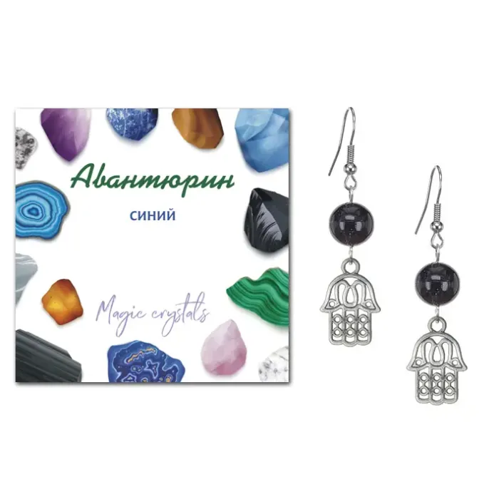 Серьги Хамса (от сглаза и зла), Синий авантюрин SEB07-02-01