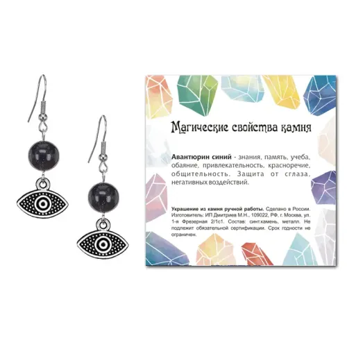 Серьги Глаз (от сглаза и порчи), Синий авантюрин SEB07-02-11