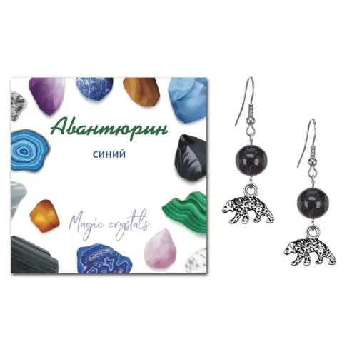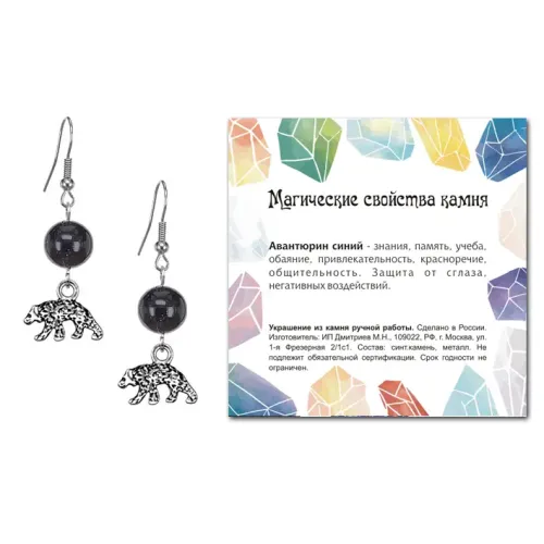 Серьги Медведь (защита, сила, победа), Синий авантюрин SEB07-02-19