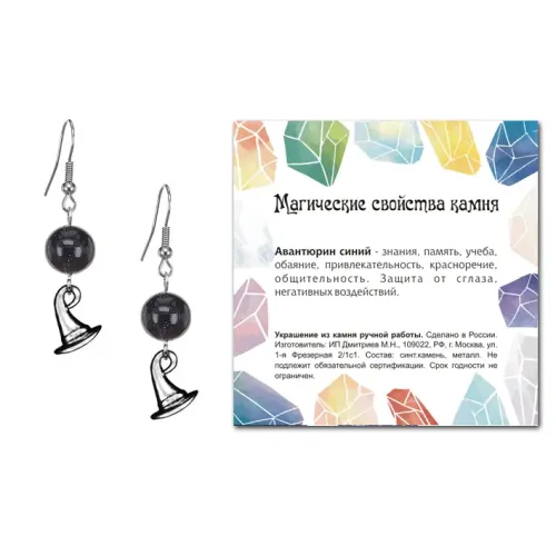 Упаковка включает прозрачный пакет с подвесом и вкладыш с описанием значения камня, что добавляет ценности каждой паре серёг. Эти серьги могут стать прекрасным подарком или дополнением к личной коллекции украшений.