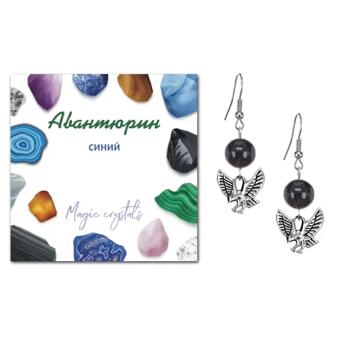 Серьги Орел (защита, сила, победа), Синий авантюрин SEB07-02-24