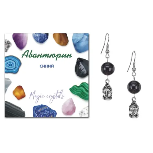 Серьги Будда (защита, духовное развитие), Синий авантюрин SEB07-02-2074