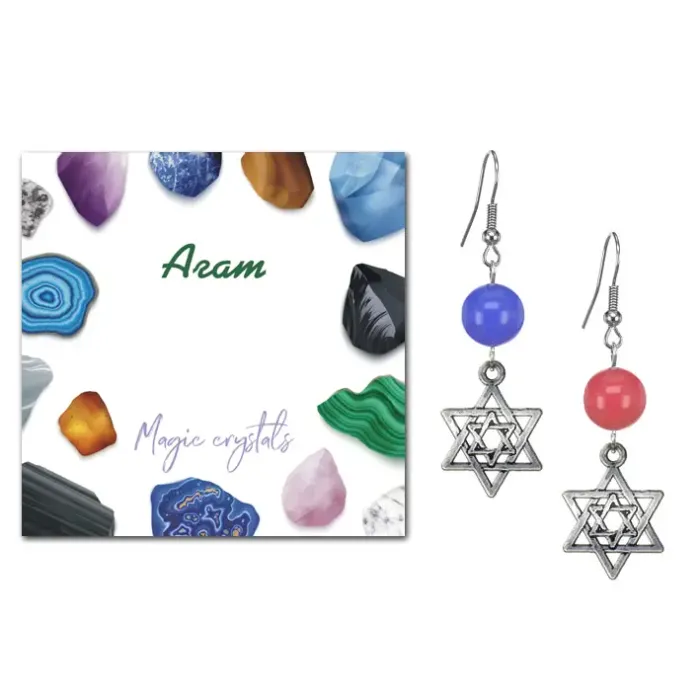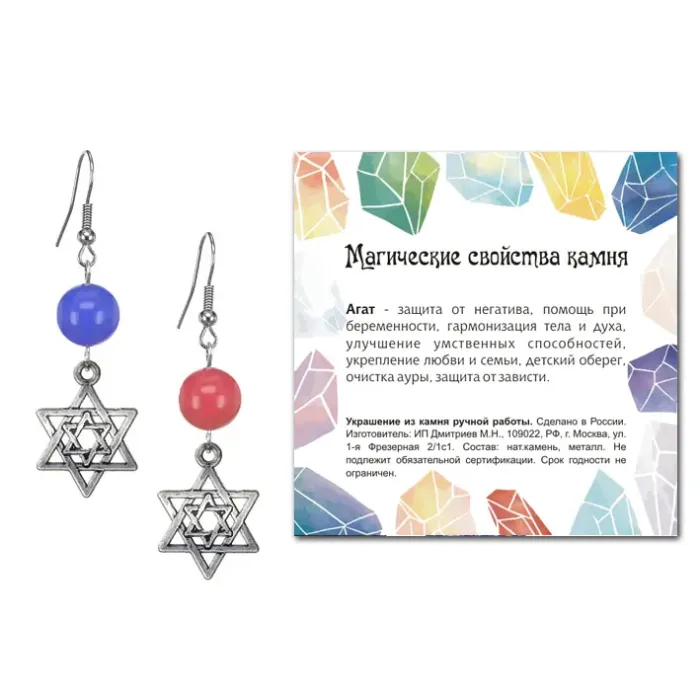 Серьги Звезда Давида (от сглаза и зла), Цветной агат SEB07-03-02