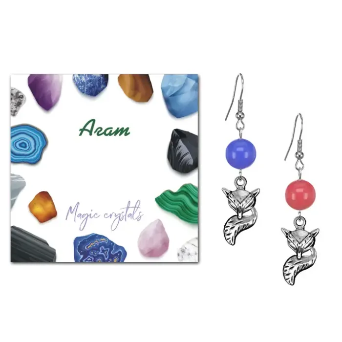 Серьги Лиса (страсть, интуиция), Цветной агат SEB07-03-03