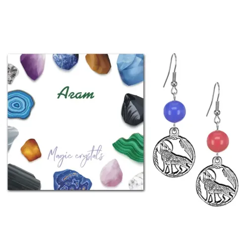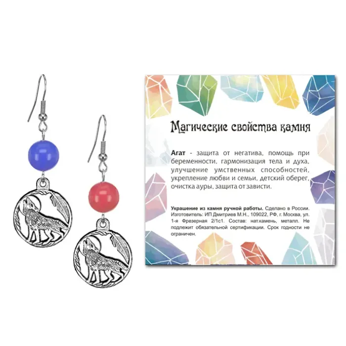 Серьги Волк (защита, сила, победа), Цветной агат SEB07-03-07