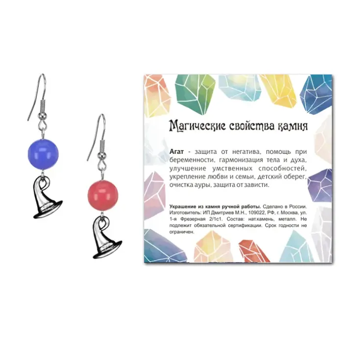Серьги-амулеты коллекции MAGIC CRISTALS 2 — это уникальное украшение, которое сочетает в себе красоту и магию натурального камня Цветной агат. Каждая бусина диаметром 10 мм выполнена в разнообразных цветах, что делает каждую пару поистине неповторимой. Фурнитура из бижутерного сплава с покрытием под серебро обеспечивает долговечность и стильный вид. Удобные крючковые швензы гарантируют надежную фиксацию на ушах. Серьги упакованы в прозрачный пакет с подвесом и дополнены вкладышем, содержащим описание значения камня, что добавляет им особый смысл и ценность. Эти серьги идеально подходят как для повседневного ношения, так и для особых случаев.