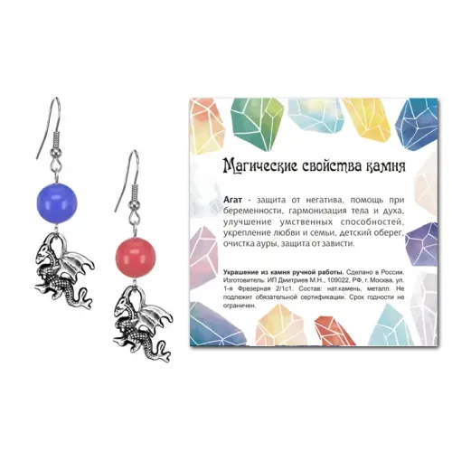 Серьги Дракон (удача, могущество, успех), Цветной агат SEB07-03-25