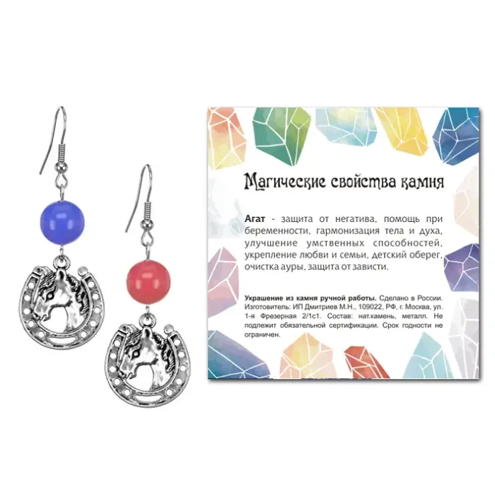 Фурнитура выполнена из бижутерного сплава с покрытием под серебро, обеспечивая долговечность и стильный вид. Тип швензы — крючок, что обеспечивает комфорт при ношении. Упаковка в прозрачный пакет с подвесом добавляет элегантности и удобства для подарка или хранения. В комплекте имеется вкладыш с описанием значения камня, что позволяет глубже понять его символику.