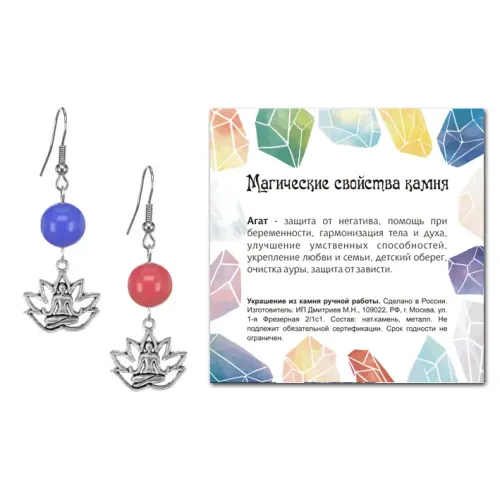 Серьги Лотос (гармония и развитие), Цветной агат SEB07-03-2064