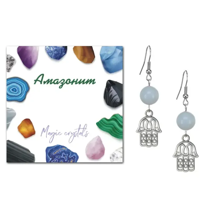 Серьги Хамса (от сглаза и зла), Амазонит SEB07-04-01