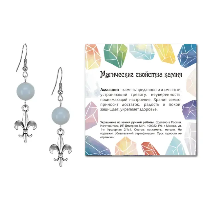 Серьги-амулеты из коллекции MAGIC CRISTALS 2 с натуральным камнем Амазонит обладают глубоким символическим значением. Эти серьги могут стать не только стильным аксессуаром, но и источником силы и уверенности.