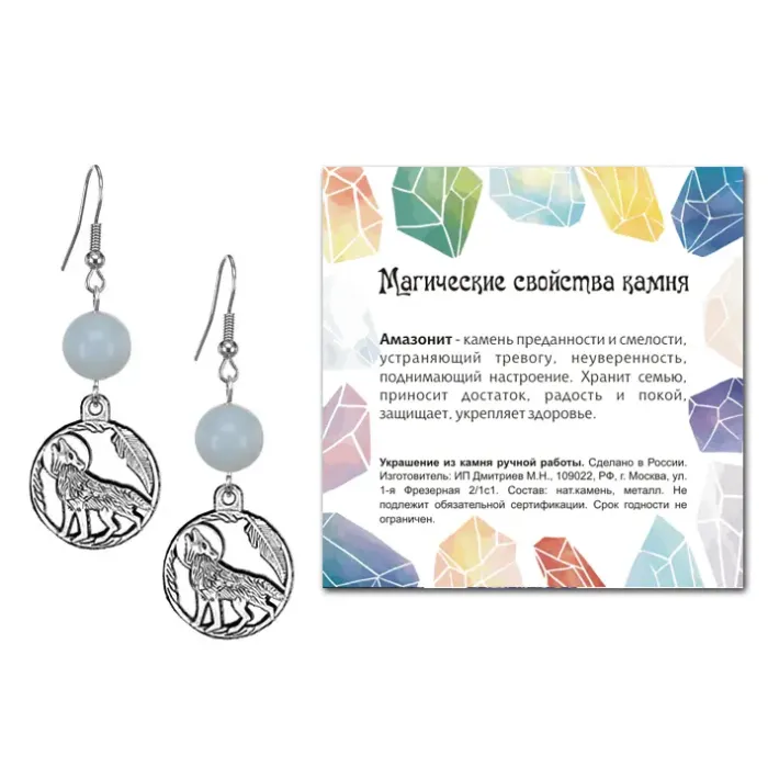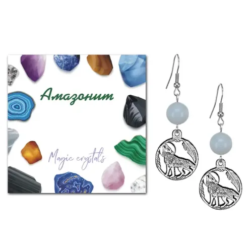 Серьги Волк (защита, сила, победа), Амазонит SEB07-04-07