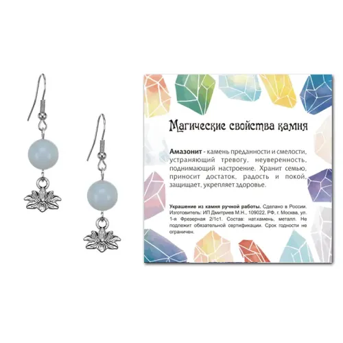 Серьги Лотос (гармония и развитие), Амазонит SEB07-04-15