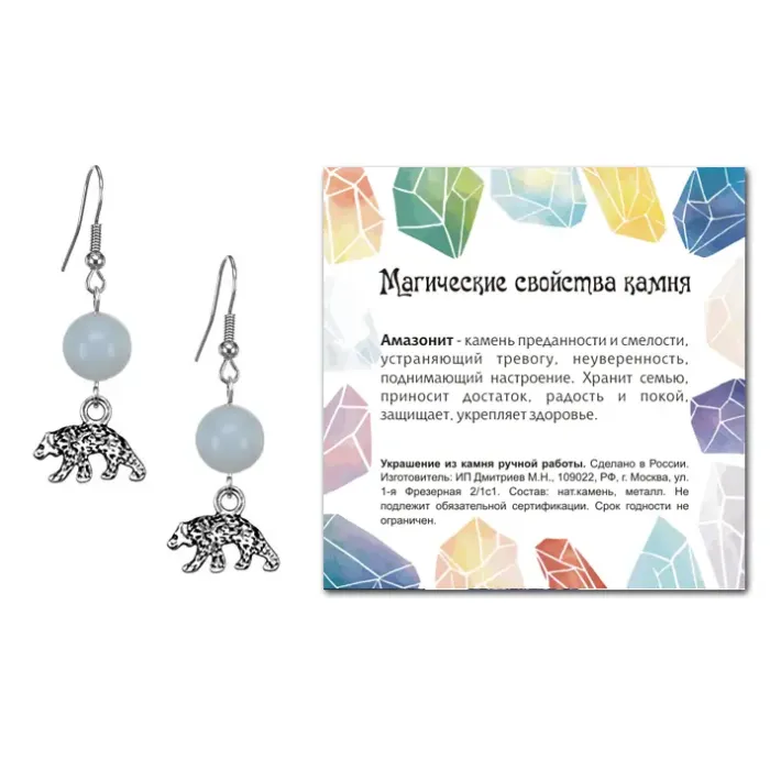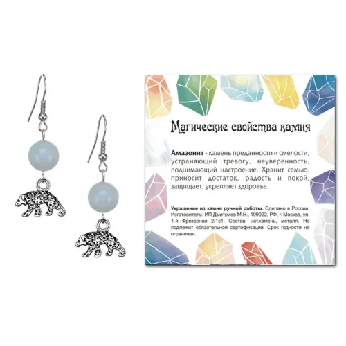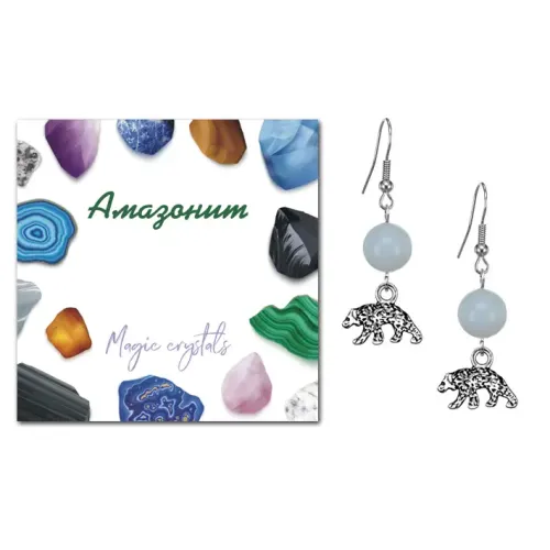 Серьги Медведь (защита, сила, победа), Амазонит SEB07-04-19