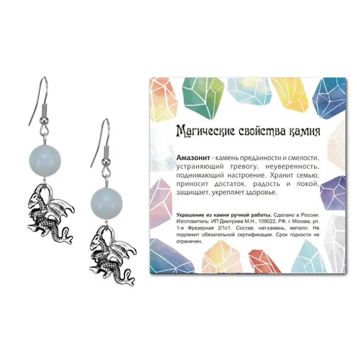 Серьги Дракон (удача, могущество, успех), Амазонит SEB07-04-25
