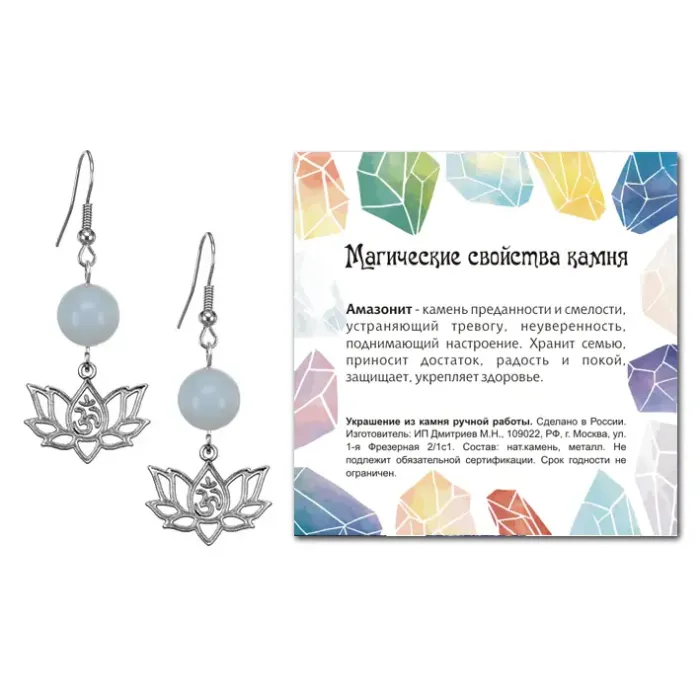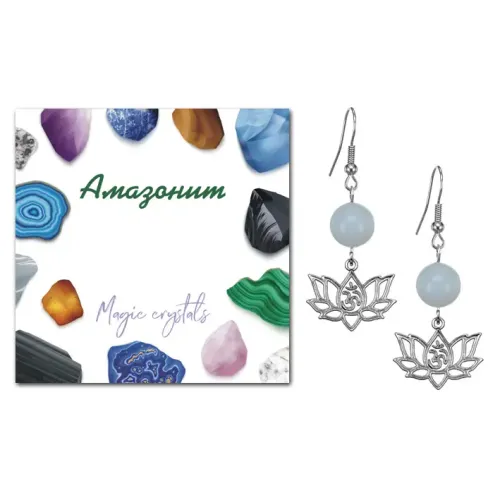Серьги Лотос и Ом (гармония и развитие), Амазонит SEB07-04-30