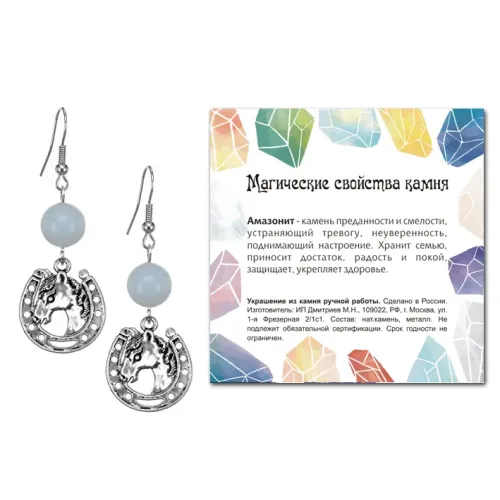 Серьги-амулеты из коллекции MAGIC CRISTALS 2, изготовленные с использованием натурального камня Амазонит, символизируют счастье и гармонию. Эти стильные серьги имеют диаметр бусин 10 мм и выполнены из бижутерного сплава с покрытием под серебро, что придаёт им элегантный вид. Тип швензы — крючок, обеспечивающий удобство в носке. Каждая пара упакована в прозрачный пакет с подвесом и дополнена вкладышем, который раскрывает значение камня для владельца. Серьги идеально подойдут как для повседневной носки, так и для особых случаев.