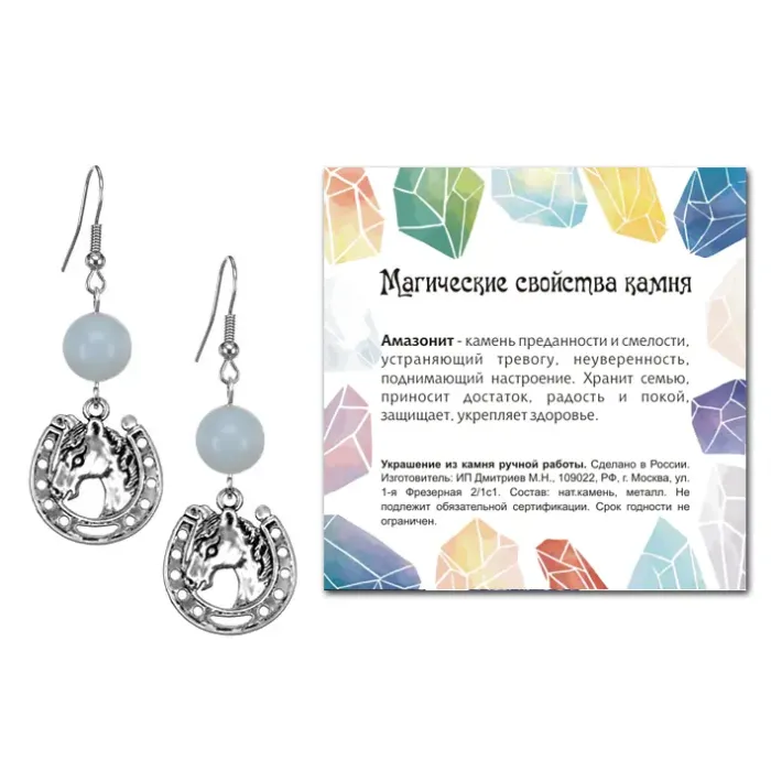 Серьги Подкова (счастье), Амазонит SEB07-04-31