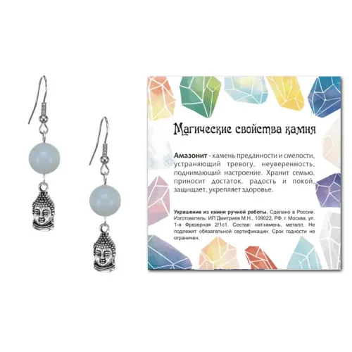 Серьги Будда (защита, духовное развитие), Амазонит SEB07-04-2074