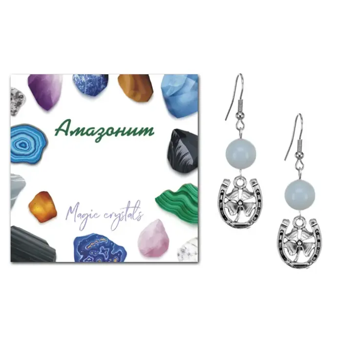 Серьги Подкова и клевер (счастье и удача), Амазонит SEB07-04-P001