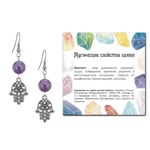 Серьги Хамса (от сглаза и зла), Аметист SEB07-05-0001