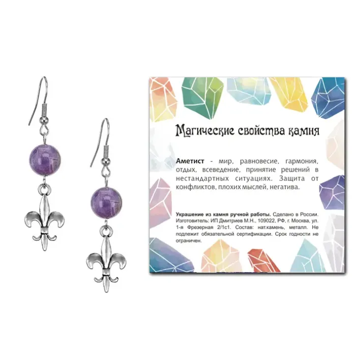 Серьги «Королевская лилия» — это изысканные серьги-амулеты из коллекции MAGIC CRISTALS 2, которые несут в себе символику достоинства, власти и успеха. Изготовленные с использованием натурального камня аметиста, они не только привлекают внимание своим элегантным дизайном, но и традиционно используются для улучшения интуиции и гармонизации внутреннего состояния.