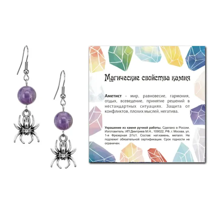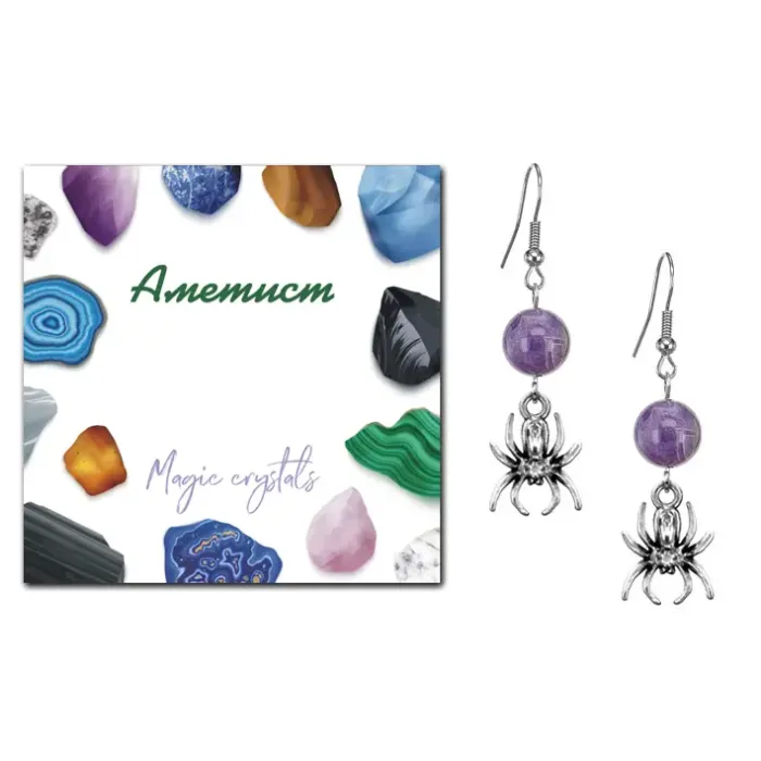 Серьги Паук (защита, трудолюбие, достаток), Аметист SEB07-05-14