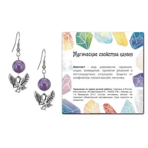 Серьги Орел (защита, сила, победа), Аметист SEB07-05-24