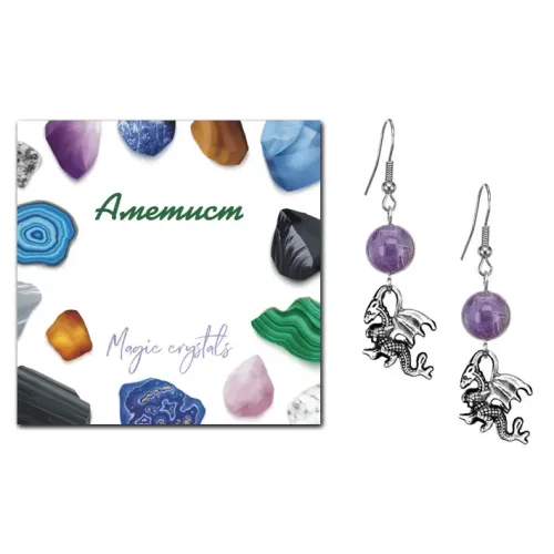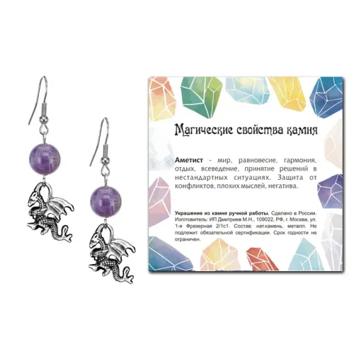 Серьги Дракон (удача, могущество, успех), Аметист SEB07-05-25