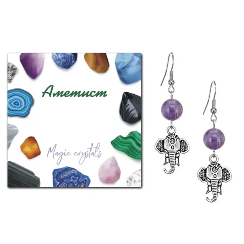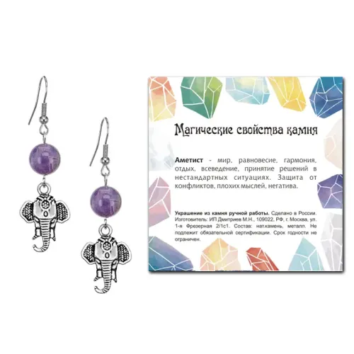Серьги Слон (мудрость, сила, долголетие), Аметист SEB07-05-26