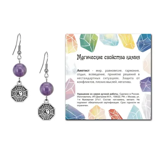 Серьги Багуа (защита от негативной энергии), Аметист SEB07-05-34