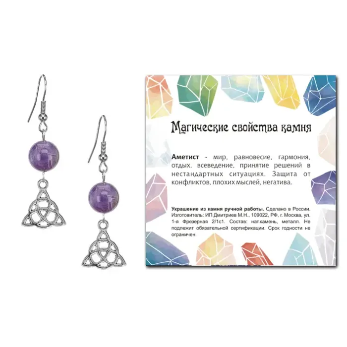 Серьги Трикветр (защита и гармония), Аметист SEB07-05-0069