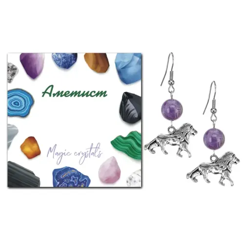Серьги Лев (храбрость, власть, благосостояние), Аметист SEB07-05-2073