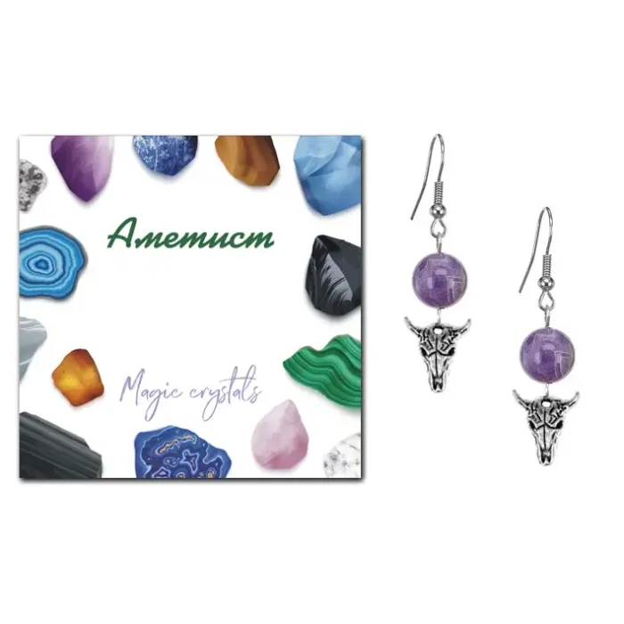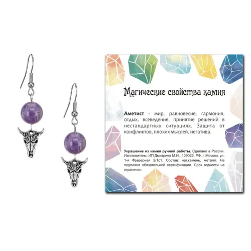 Серьги Череп быка (сила, мужество, защита), Аметист SEB07-05-2076