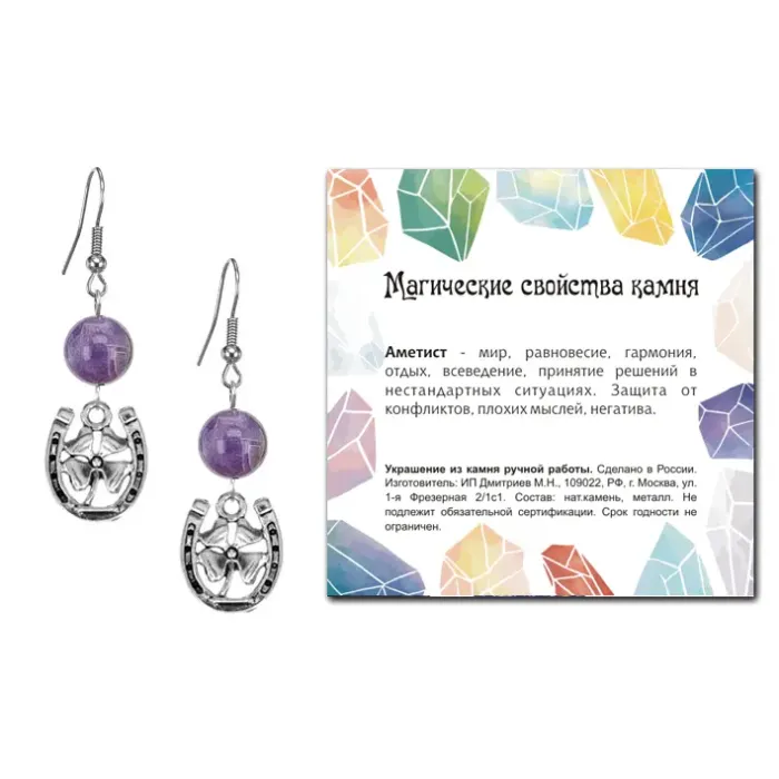 Серьги Подкова и клевер (счастье и удача), Аметист SEB07-05-P001