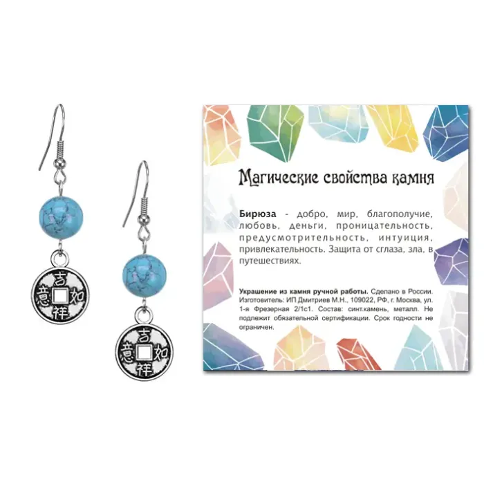 - В комплекте вкладыш с описанием значения камня бирюза для дополнительной информации о его свойствах.