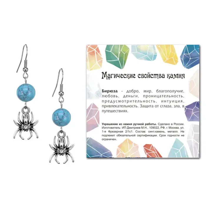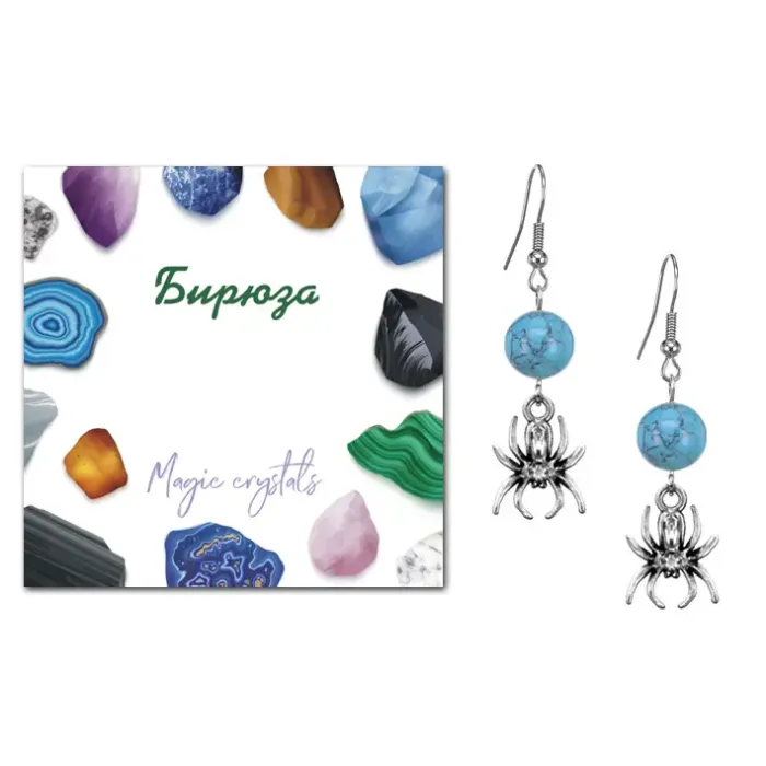 Серьги Паук (защита, трудолюбие, достаток), Бирюза SEB07-06-14