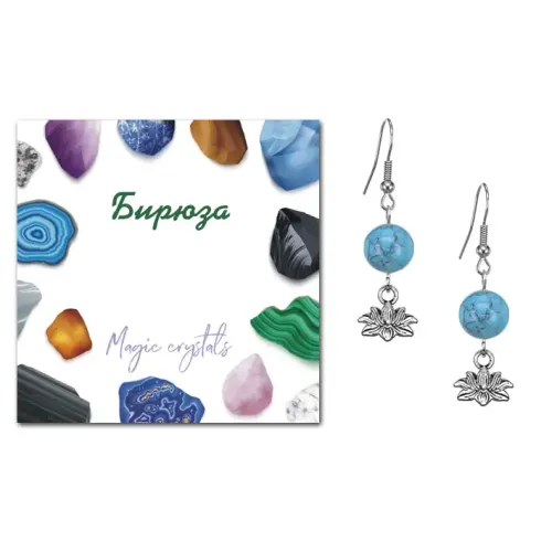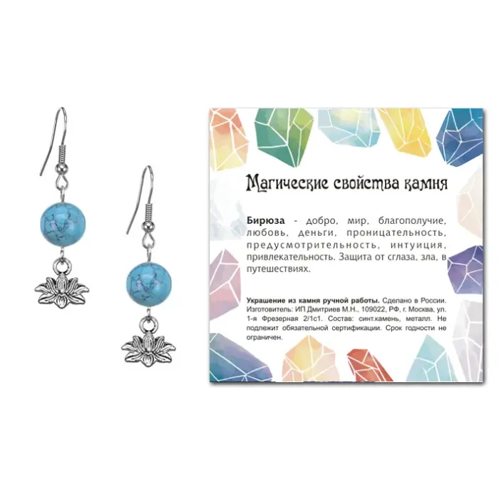 Серьги Лотос (гармония и развитие), Бирюза SEB07-06-15