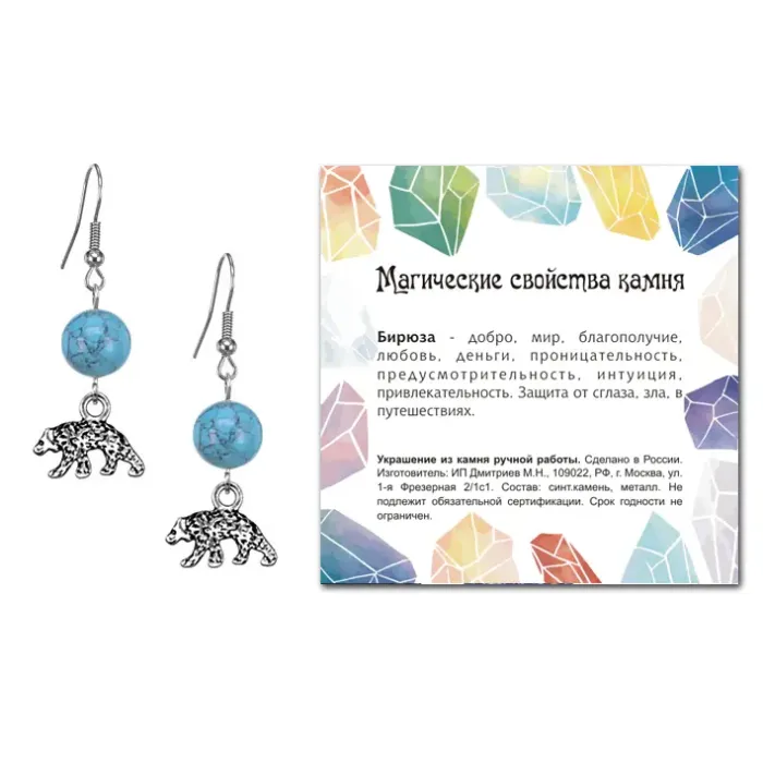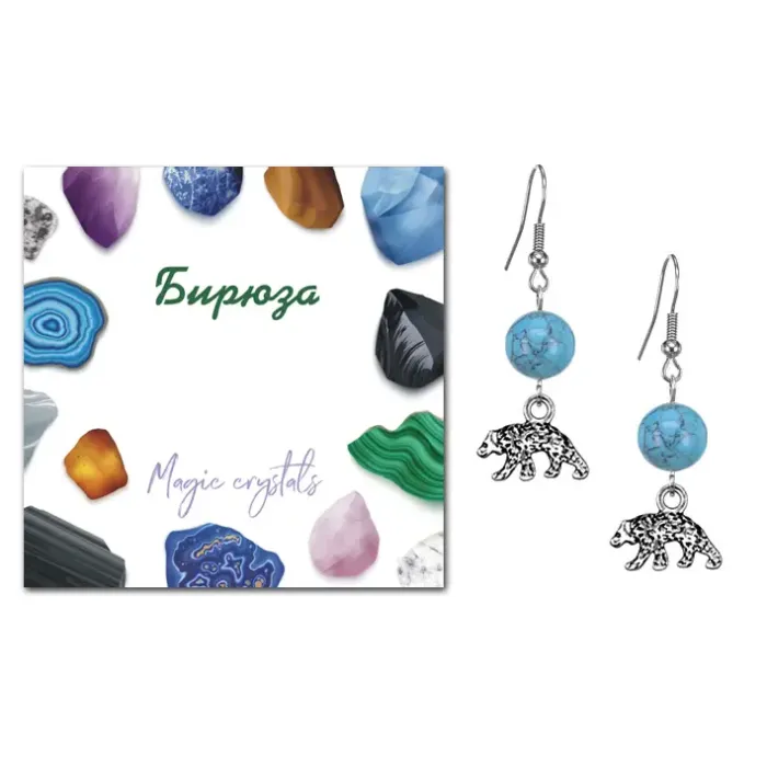 Серьги Медведь (защита, сила, победа), Бирюза SEB07-06-19
