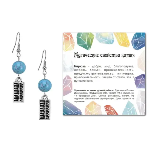 Серьги Счеты (богатство), Бирюза SEB07-06-21