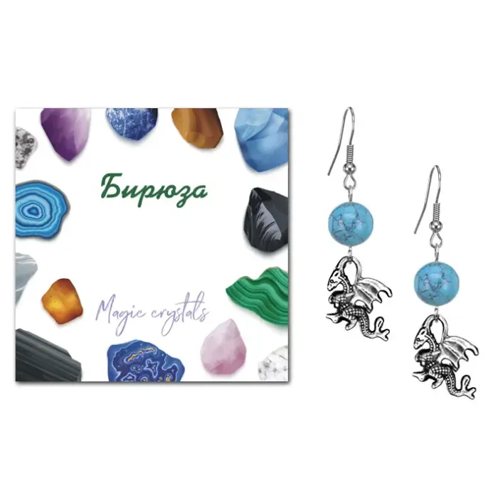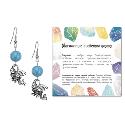 Серьги Дракон (удача, могущество, успех), Бирюза SEB07-06-25