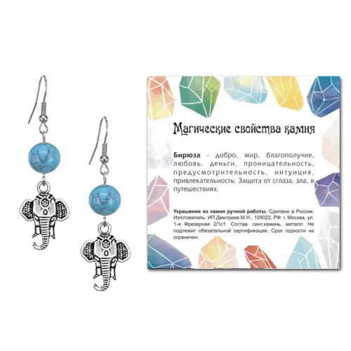 Серьги Слон (мудрость, сила, долголетие), Бирюза SEB07-06-26
