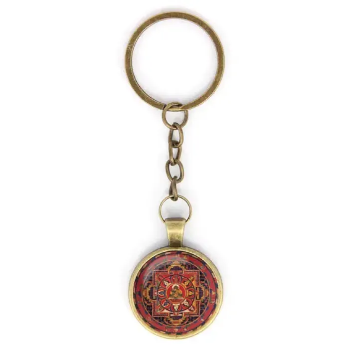 Брелок Тара мандала — это стильный аксессуар с глубоким символическим значением, который традиционно ассоциируется с защитой и благополучием. Изготовленный из бижутерного сплава с покрытием под бронзу, он обладает элегантным внешним видом благодаря выпуклой стеклянной линзе.