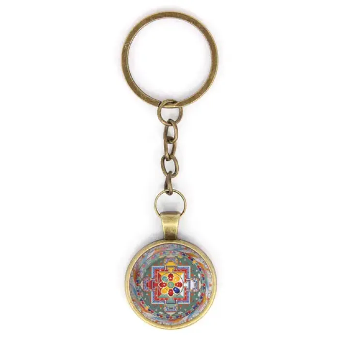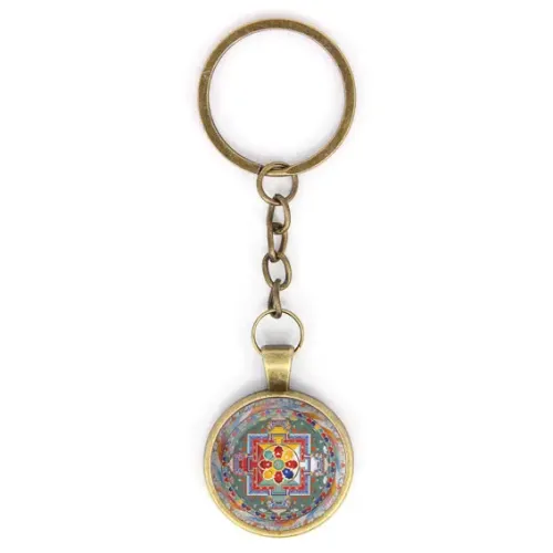 Брелок Хеваджра мандала — это уникальный аксессуар, который сочетает в себе стиль и символику. Изготовленный из бижутерного сплава с бронзовым покрытием, он станет не только практичным предметом, но и интересным элементом личного стиля.